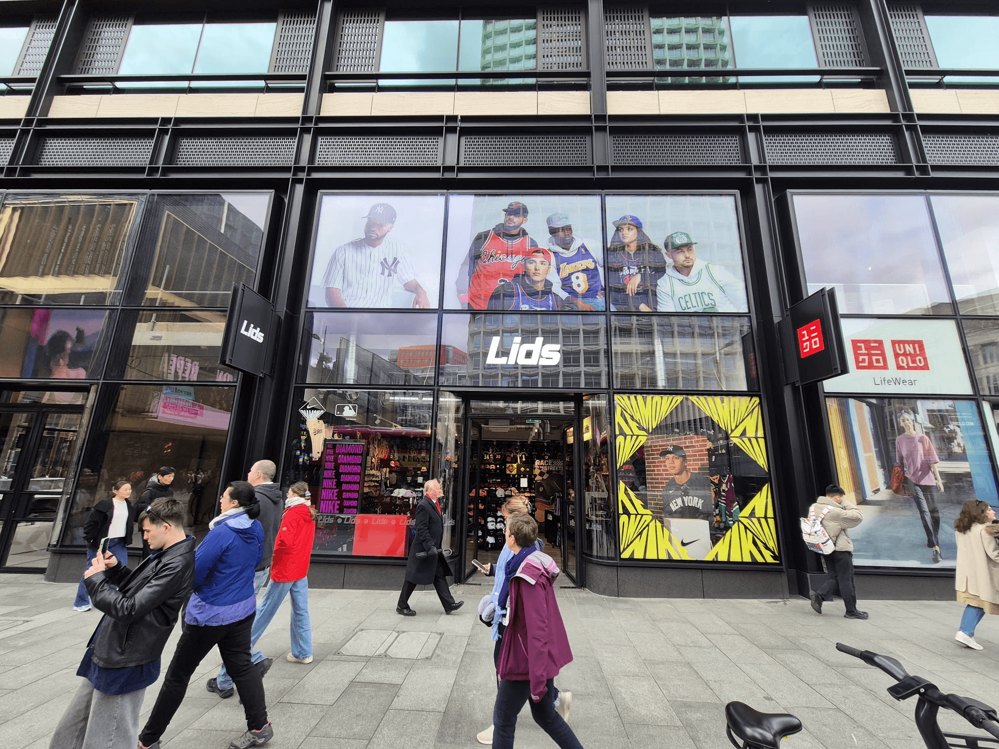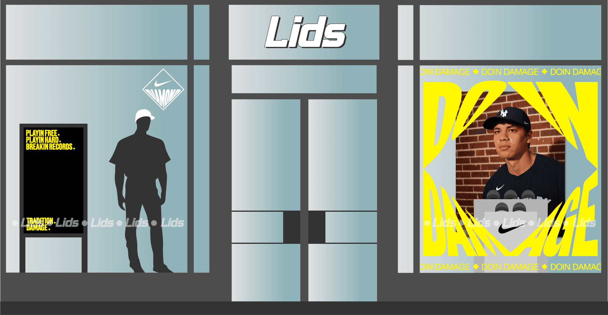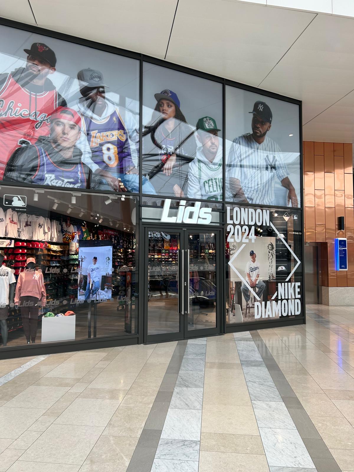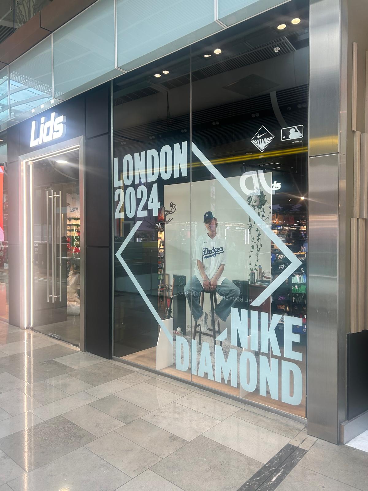 During the first half of 2024, Fanatics managed to secure a window spot in 40 different LIDS stores across Europe, including 6 flagship stores in London. For both campaigns, the same Nike Diamond was used to sell MLB product, which in turn would be distributed by Fanatics. The task was to create window, in-store, and digital graphics with the guidelines provided, plus our own photography and approved creative ideas.