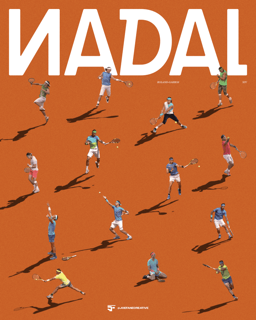 I may not be the biggest fan of tennis, but Nadal has always been an iconic name in sports for as long as I can remember. Of the big three, I always resonated with him the most, so I produced this graphic to celebrate his unprecedented 14 Grand Slams at the French Open.