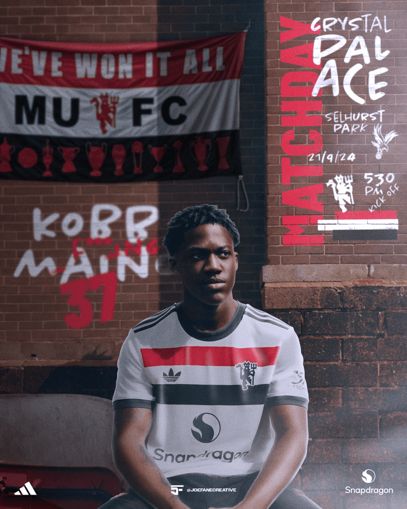 Working with Manchester United is one of my creative dreams, but for now I’ve settled on trying to put together a collection of matchday graphics. This one features Kobbie Mainoo in an urban environment, illustrating the gritty nature of Palace’s ground, Selhurst Park.