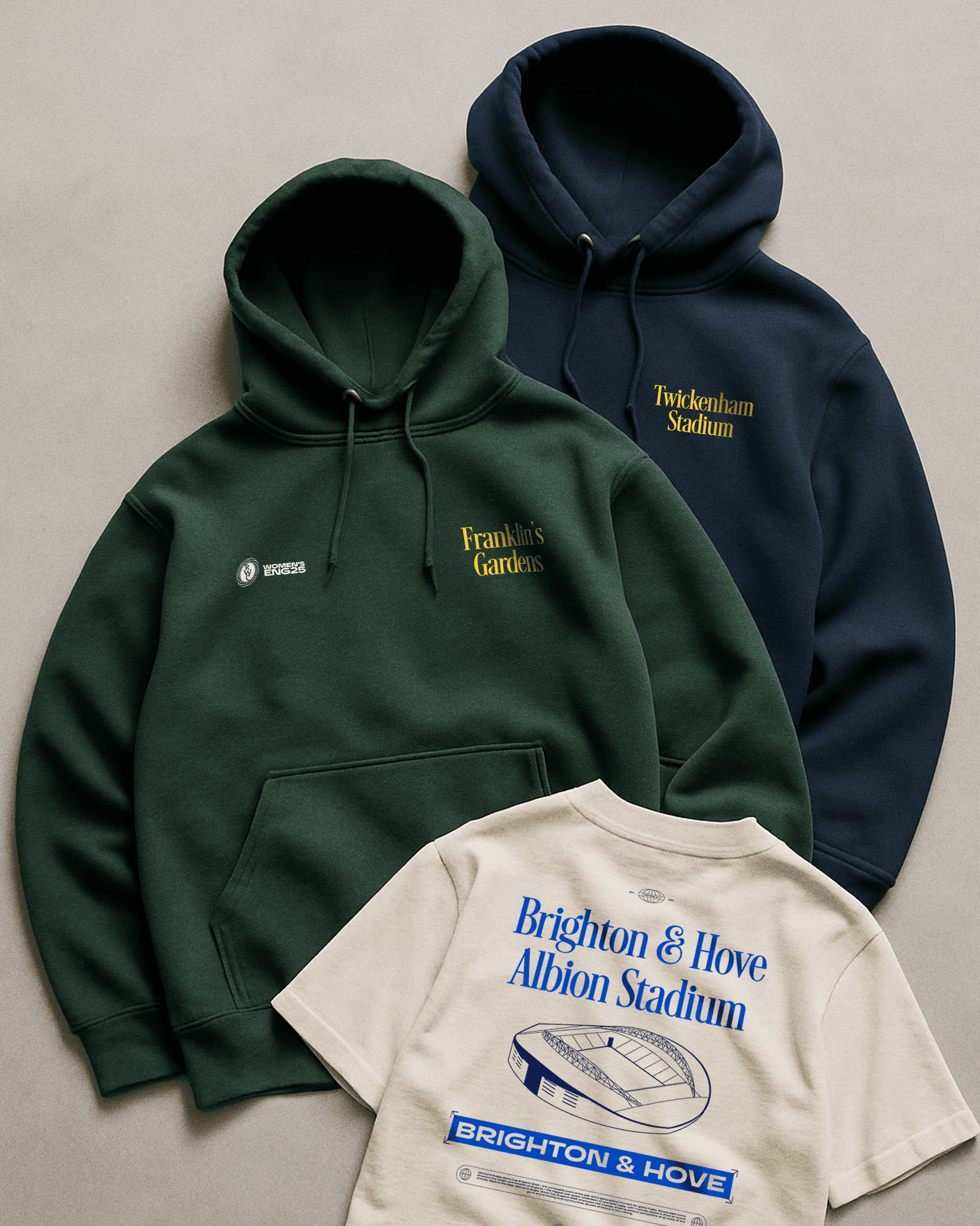 The final outcome was a range of tees and hoodies that had enough variety to reflect each city while still feeling consistent as a full collection. I aimed to tie the colour choices back to each location in a subtle way, creating a connection between the product and its audience. To bring in a bit of streetwear influence, I used both left and right chest prints - an approach that’s become more common in the space and one that helped give the designs a balanced, wearable feel.